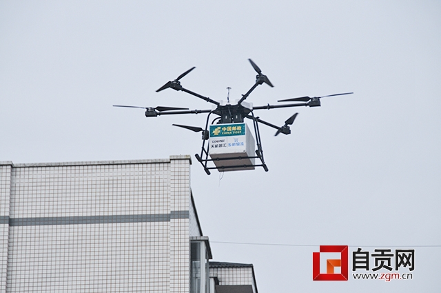 “动力系统正常——导航系统正常——飞控系统正常——降落系统正常——通讯系统正常——”1月31日风和日丽,下午两点30分随着自贡市邮政管理局局长黄贵明一声令下,一架型号为为探索者M-Q6的无人机从贡井区莲花镇农贸市场旁边的空地上缓缓升空,无人机货仓里装载着党报党刊(其中包括11份《自贡日报》)以及一个收件人为葛麻村2组村民胡能贵的包裹,目的地为直线距离4.7公里外的葛麻村村委会。