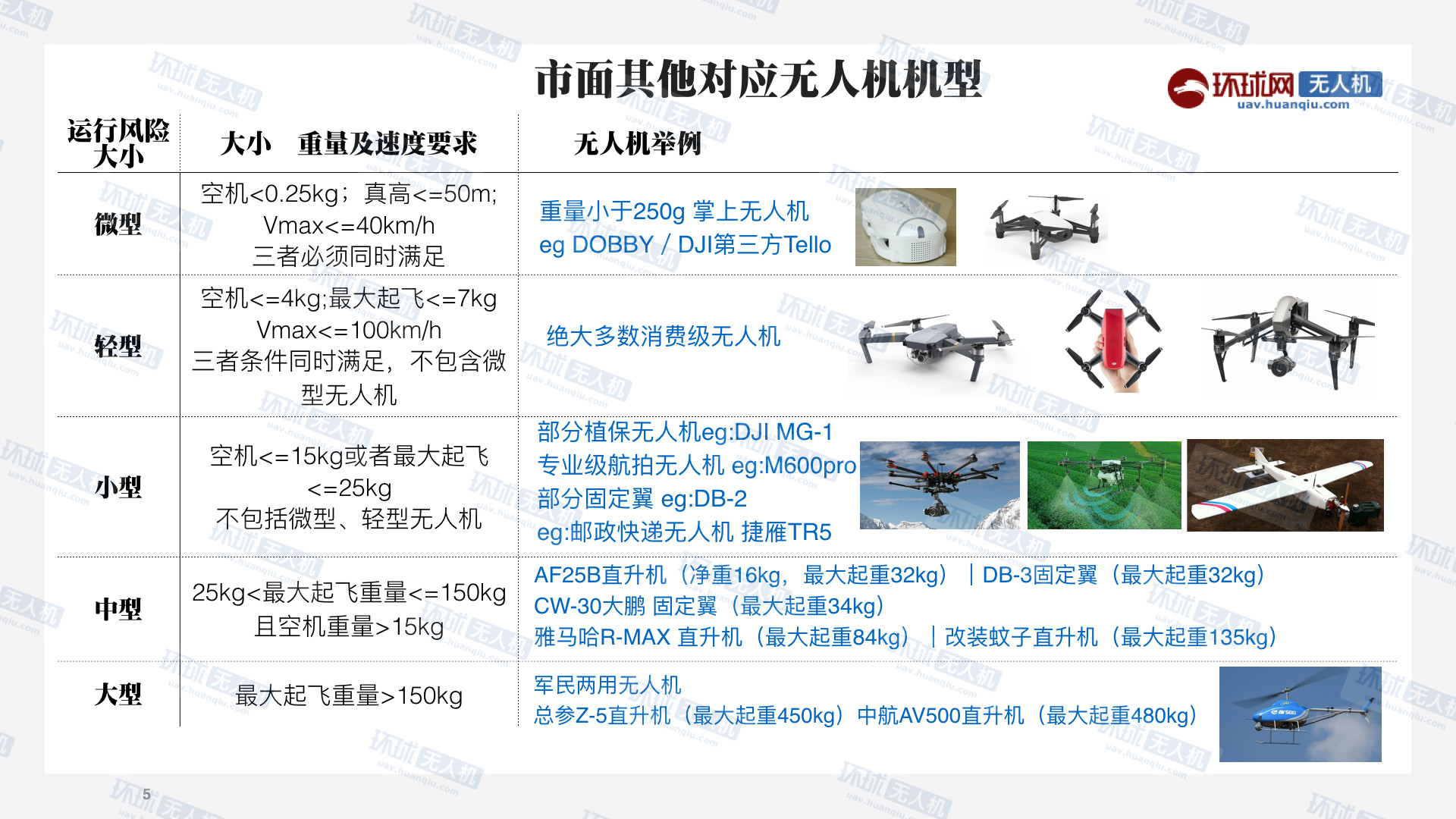 三、民用无人机按照运行风险大小又逐一分为以下几大类: