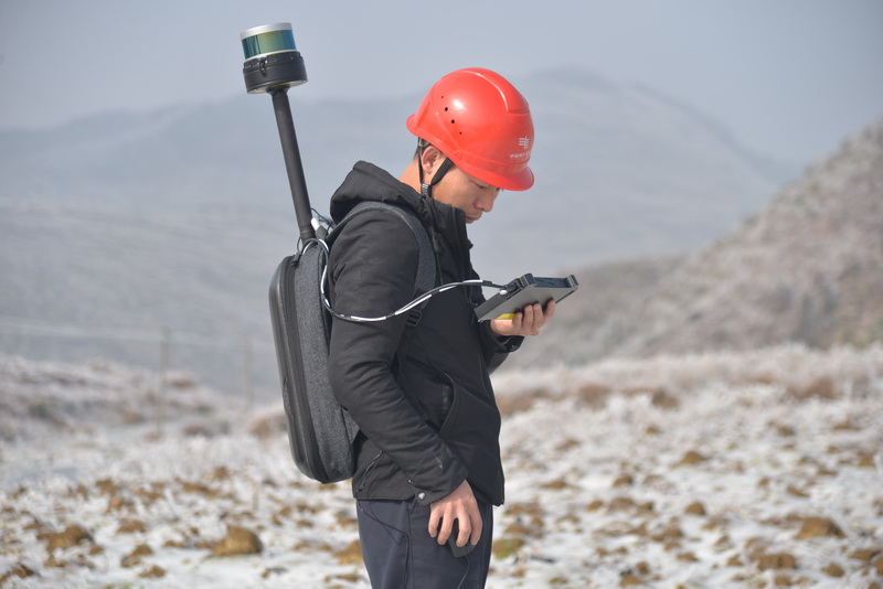 南方电网工作人员背着激光雷达进行线路扫描观测