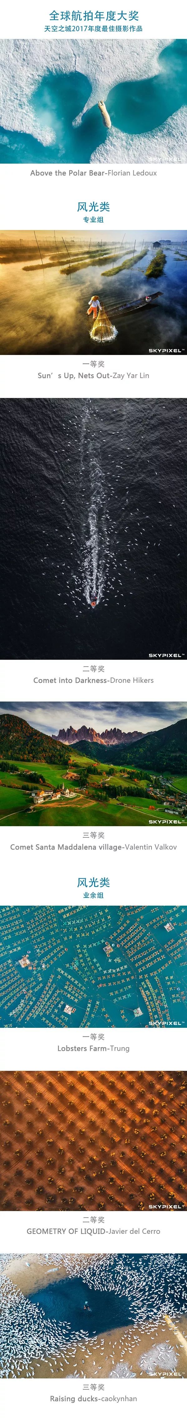 专业航拍社交平台SkyPixel天空之城™与DJI大疆创新合办的2017年天空之城摄影大赛于1月31日圆满结束,并公布了2017年度全球航拍年度作品。