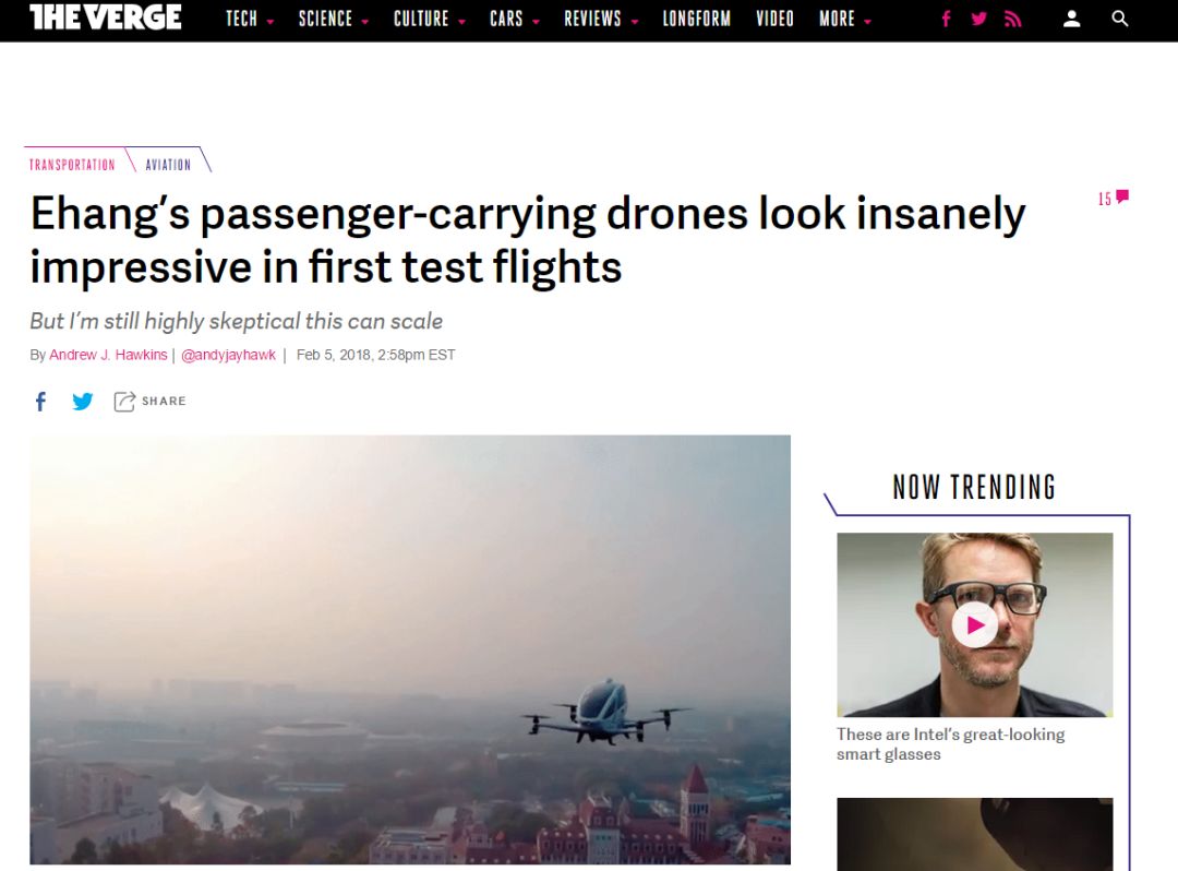 从概念孵化,到测试飞行,再到预计将在月底举行的飞行演示,整个发展过程无比清晰地显示出亿航的信心和能力,待续。