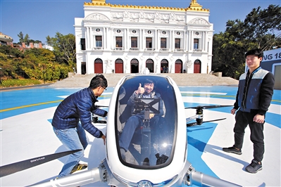 据了解,这是全球第一款可载客的自动驾驶飞机,最快于今年夏天,亿航智能将正式公开载人试飞,在空中打“飞的”未来不是梦。