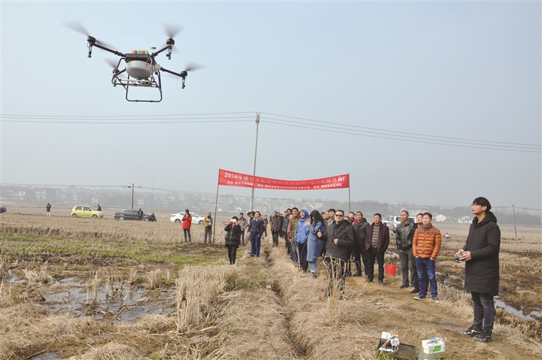 站在高新园区(三界镇)长桥村的田埂上,两位小伙子正操控着遥控器,让农用飞机稳稳飞上天,他们是首期培训班的学员。“原先人工喷药一天只能打10来亩,但用无人机操作,一天可能就是200亩到300亩。”正在操作无人机的丁鉴告诉记者,他的父亲原先就是种粮大户,现在子承父业,希望通过培训,把无人机操作作为新一代农民的必备技能。