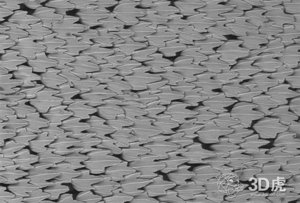 鲨鱼皮是特别的,虽然看起来很光滑,但实际上却覆盖着数以千计的细小齿状体。George Lauder教授将其与人类牙齿比较,这些小齿根据它们在鲨鱼身上的位置而具有不同的形状和大小。