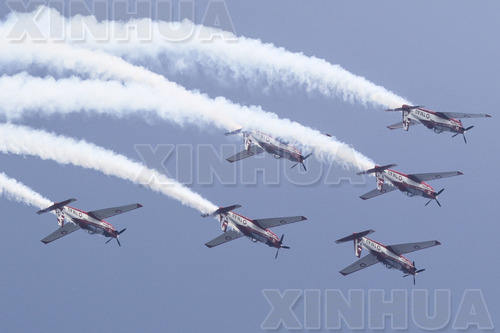 2月11日,在新加坡航展上,印度尼西亚空军飞机进行飞行表演。(新华社/美联)