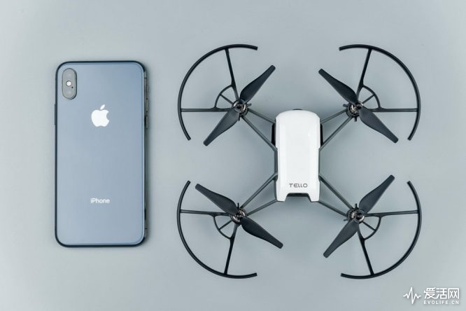 如果要谈轻量化和小型化,那Tello会鲜逢敌手,机身核心部分只有大概三分之一个iPhone X那么大,加上电池后的起飞重量才有80g,这种大小如果一旦发生意外也可以把对人可能产生的伤害降到最低,可以抹消掉相当一部分顾虑。
