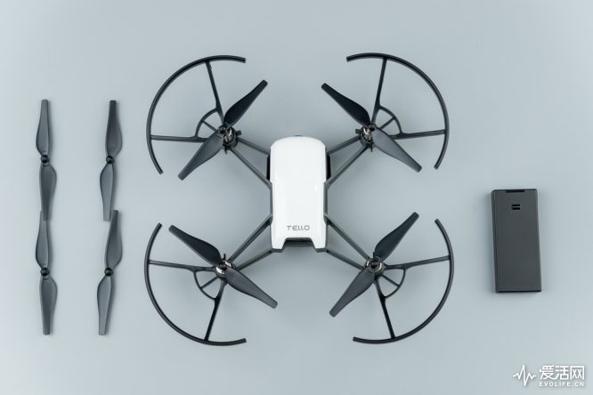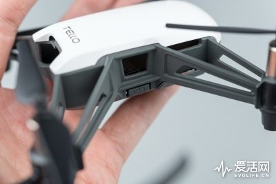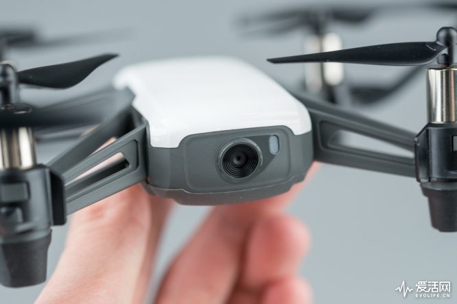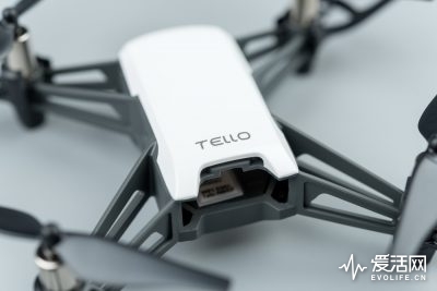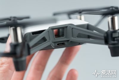 Tello选择先从自身上降低人们对无人机的恐惧感。作为一台固定臂四轴飞行器,它的结构更加简单紧固,造型不会超出人认知,同时Tello尽自己可能地减少机身上需要使用者关注的元素,机身上除了一个电池仓,电源开关和microUSB接口之外,没有其他地方是你需要特别注意的。桨叶保护罩已经预装好,除非极端在意飞行时间,否则没有拆下它的必要。