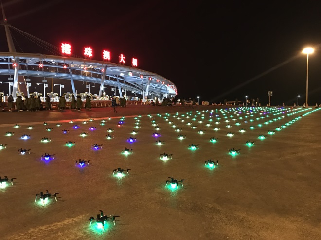 在港珠澳大桥上进行编队表演无论是在定位技术,还是通讯技术上,技术团队都承受了巨大的挑战和压力。我们知道,一般的GPS定位精度在2.5米左右,受天气和环境等客观条件影响,误差可能更大。而此次在港珠澳大桥上进行编队飞行,海上的大风、桥上强大的地磁干扰、以及现场的光电干扰都在考验着无人机编队的工程师们。