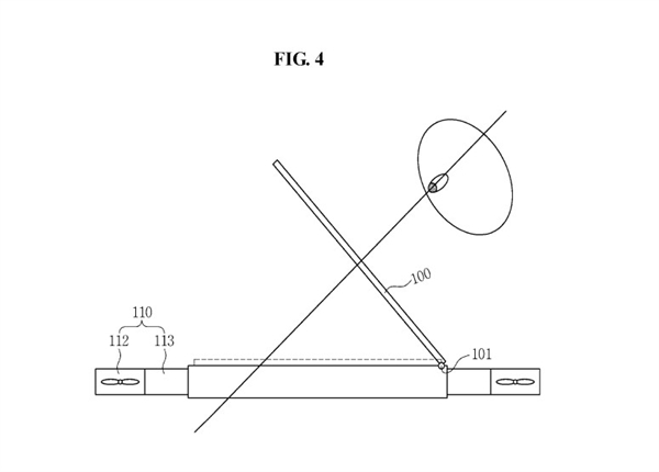 图4显示了关节操纵器(113)和控制飞行方向的螺旋桨。这款无人机还配备了一个障碍检测功能,可以自动避开其他物体。