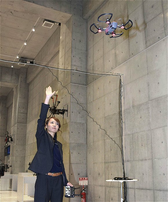 在体验无人机飞行的过程中,人们可以尝试仅仅用手势来操控无人机,这使人们的印象十分深刻。负责馆内无人机飞行的一位官员表示,“日本其实没有太多的活动场所,我们希望通过推广,让人们近距离的接触并体验无人机。”