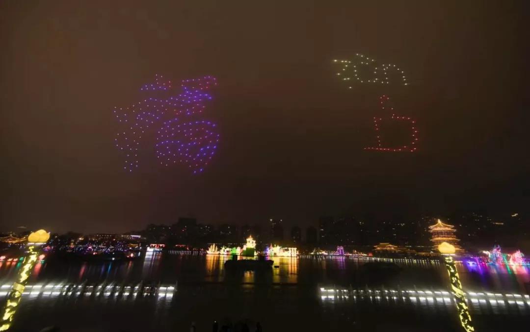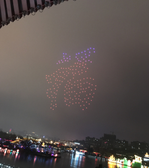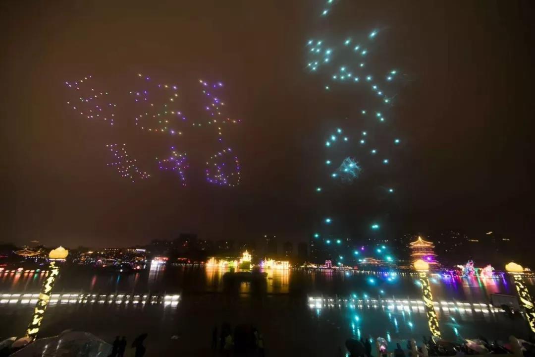 2月20日晚九点,300架无人机在西安大唐芙蓉园升空,通过盘旋翻转等姿态变化和灯光变换,将一个个充满西安元素的灯光图案展示在夜空中。精彩的表演让现场观众深受震撼,同时也将西安人最美好的新年祝福传递给全世界。这些被称为“夜空中的精灵”无人机灯光秀表演,由创造过世界吉尼期纪录的团队操盘,展示了古都创新、艺术、时尚共生共融的城市特质,也秀出西安的科技硬实力。灯光秀让西安年更精彩