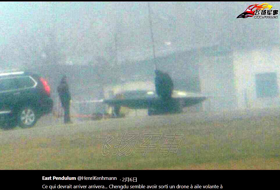 有人猜测这张模糊的照片是成都新式飞翼布局无人机的缩比测试模型