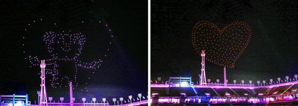 英特尔Shooting Star无人机在空中拼出立体的爱心图案,向奥运会健儿表达感谢和喜爱。