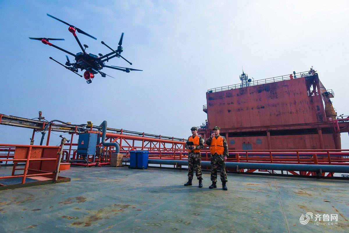 东营边防开展海上石油产区无人机热成像巡航