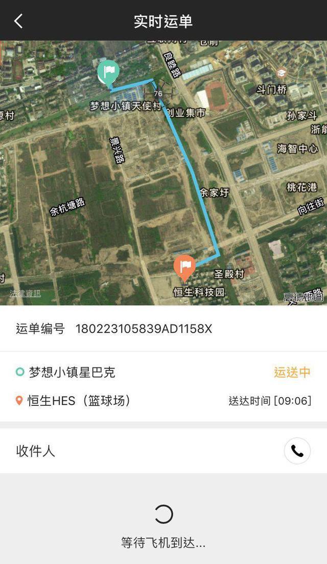 现在支持配送的有两个点,从梦想小镇的星巴克出发,送到飞行距离都是2公里左右的海创科技中心和恒生科技园。