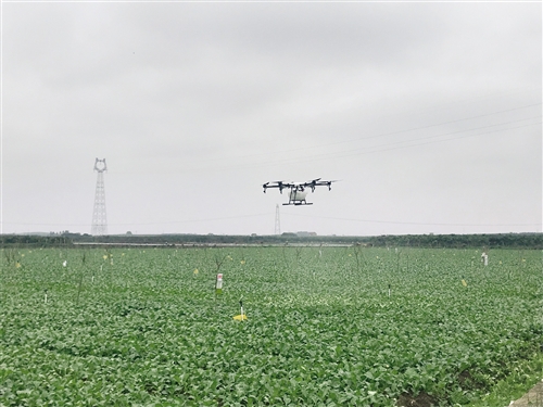 2月28日上午,记者来到绿之都果蔬产业示范区,大片的油菜花竞相怒放,一片金黄。在田间,几名工作人员正熟练地操作手中的遥控器,无人机便“听话”地飞旋,按照设定好的线路喷洒微量元素。