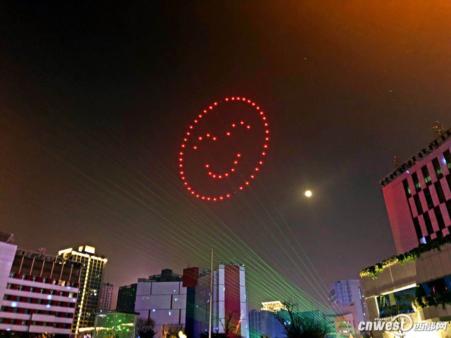 “500架无人机同时表演在西北地区是首次,更重要的是,500架无人机在高楼林立的创业咖啡街区飞行表演,仅是由一台电脑控制的。” 负责本场无人机表演的团队亿航智能集团联合创始人熊逸放说。