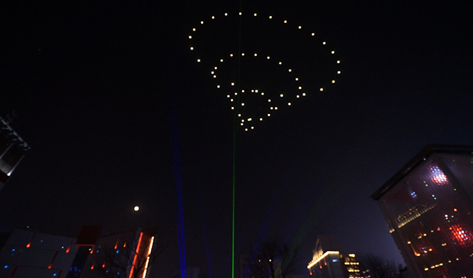 此次表演中,亿航白鹭团队突破以往的二维平面点阵无人机编队模式,首次实现3D立体编队造型,让360度不同角度的现场观众都能欣赏到别样的光影风景。