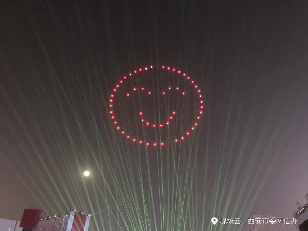 今年的元宵节,引领时尚的高新区为西安市民打造了一场与众不同的节日盛宴。据记者了解,在西安创业咖啡街区,众多精彩好戏不断上演,舞台区的音乐、魔术、杂技轮番登台,长达80米的长街宴汇聚西安各类“网红餐饮”,为市民带来别具一格的美食体验。而这其中,最让人期待的,当属500架无人机带来的“大秀”。记者现场了解到,为了让观众在各个方位都能一睹本次无人机演出的精彩,本次表演突破以往平面点阵编队,而采用3D立体编队造型,实现360°观看。当晚,无人机到达预定高度后,演出正式开始,漫天飞舞的无人机光点渐渐汇聚组成一系列精美的同心圆,随即它们由二维平面逐步纵深展开,在夜空中形成一个深邃的时光隧道,恰似天外来客,梦幻的星幕光影放佛带领观众穿越古今,回望盛世长安,展望高新西安,构成一幅长200米、高150米、宽84米的星空画卷。