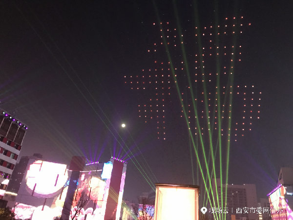 当500架无人机在西安创业咖啡街区的夜空绽放,“科技中国年”的绚烂多彩成为2018“西安年•最中国”中一道最独特的风景线;当“时光隧道”、“我爱西安”、“硬科技之都”、“西安年•最中国”等主题篇章展现出绝美的星空画卷,“爱西安”成为人们最想表达的语言;当别样的“西安年”刷屏我们的朋友圈,奋进中的高新区、奔跑中的大西安已经在新时代的新征程上阔步前行,奔向“世界一流科技园区”、“建设国家中心城市”的美好新未来。