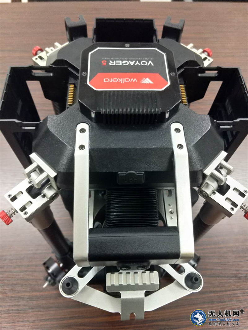 Voyager5最大的特点就是紧凑感十足,整机采用的可折叠化的设计。从机臂、脚架到双GPS都是可以进行折叠,这样的设计大大的节省了空间的使用,从而可以轻松的将其放入一个背包或者行李箱中,实现单兵作业的目的。VOYAGER 5目前有两个版本,一个是采用4G网络信号图传的版本,另一个则是传统WiFi图传的版本。