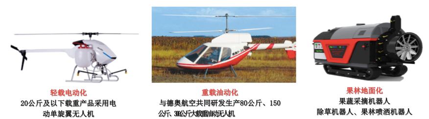 汉和航空是世界上唯一能够同时研发生产油动无人机直升机/电动无人机直升机/电动多旋翼及地面果林喷洒/采摘机器人的企业。