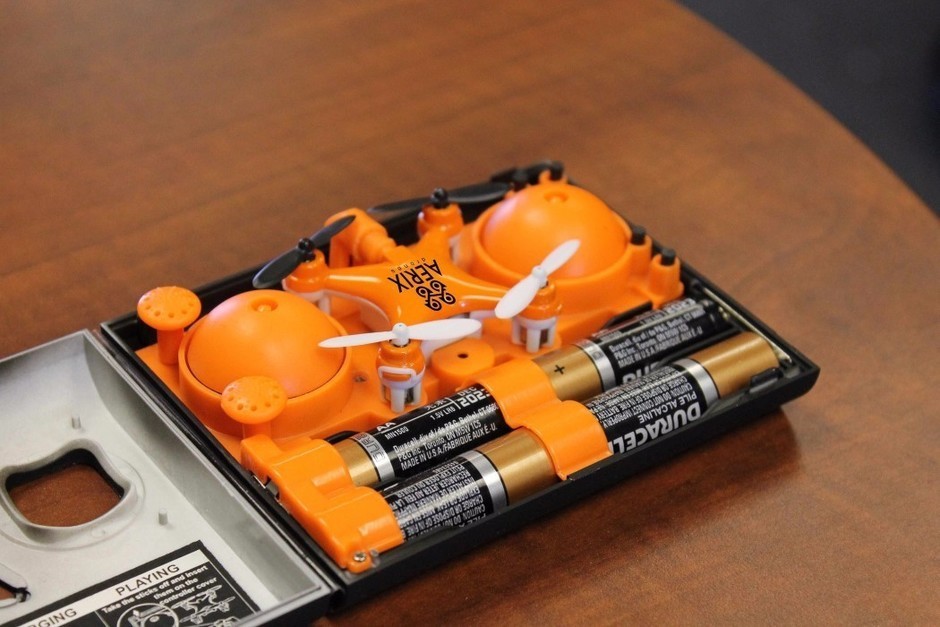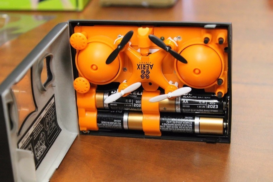 对于想要尝试把玩无人机,而又嫌专业机型太过庞大十分累赘,而且价格太贵的朋友,下面这个产品可能是个不错的选择。国外设计师Aerix最近研发了一种超小型的无人机,非常适合让初学者过一把无人机的瘾。这种无人机的尺寸非常小巧,加上手柄以及电池组的整套盒子也跟手机的大小差不多,但是要比手机更厚一些。值得一提的是,这款无人机和手柄均采用AA电池供电,也就是咱们常说的5号电池,适用性很广。别看它十分小巧,但也配备了6轴陀螺稳定装置,可以获得更加稳定的飞行效果。目前这款无人机的售价为30美元,感兴趣的朋友也只能海淘才能购买到了……