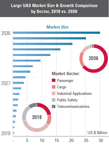 报告指出,受到长途货运及客运飞机的生产、服务需求刺激,全球大型无人机系统的市场未来 20 年会急速增长,这方面的支出将由现时的数亿美元,增至 2036 年的 300 亿美元。同时,相关就业机会也会增至 6 万个。