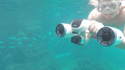 经过多年探索,近两年深之蓝开启了消费级领域的尝试,并瞄准智能水下运动。2017年的CES展上,深之蓝推出“白鲨MIX”,用于水下助游。其类似于一架水下平衡车,产品体积小、推力大、便于携带和操作,多应用于游泳场馆、水上世界、海滨浴场等场所。