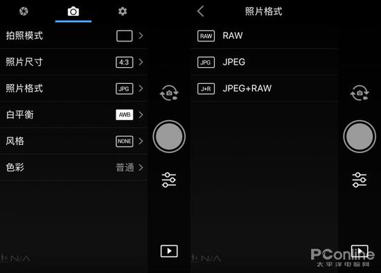 RAW设置界面