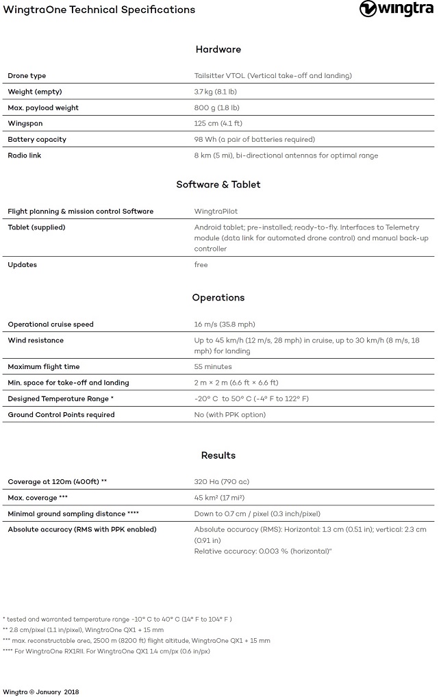 WingtraOne详细参数如下:
