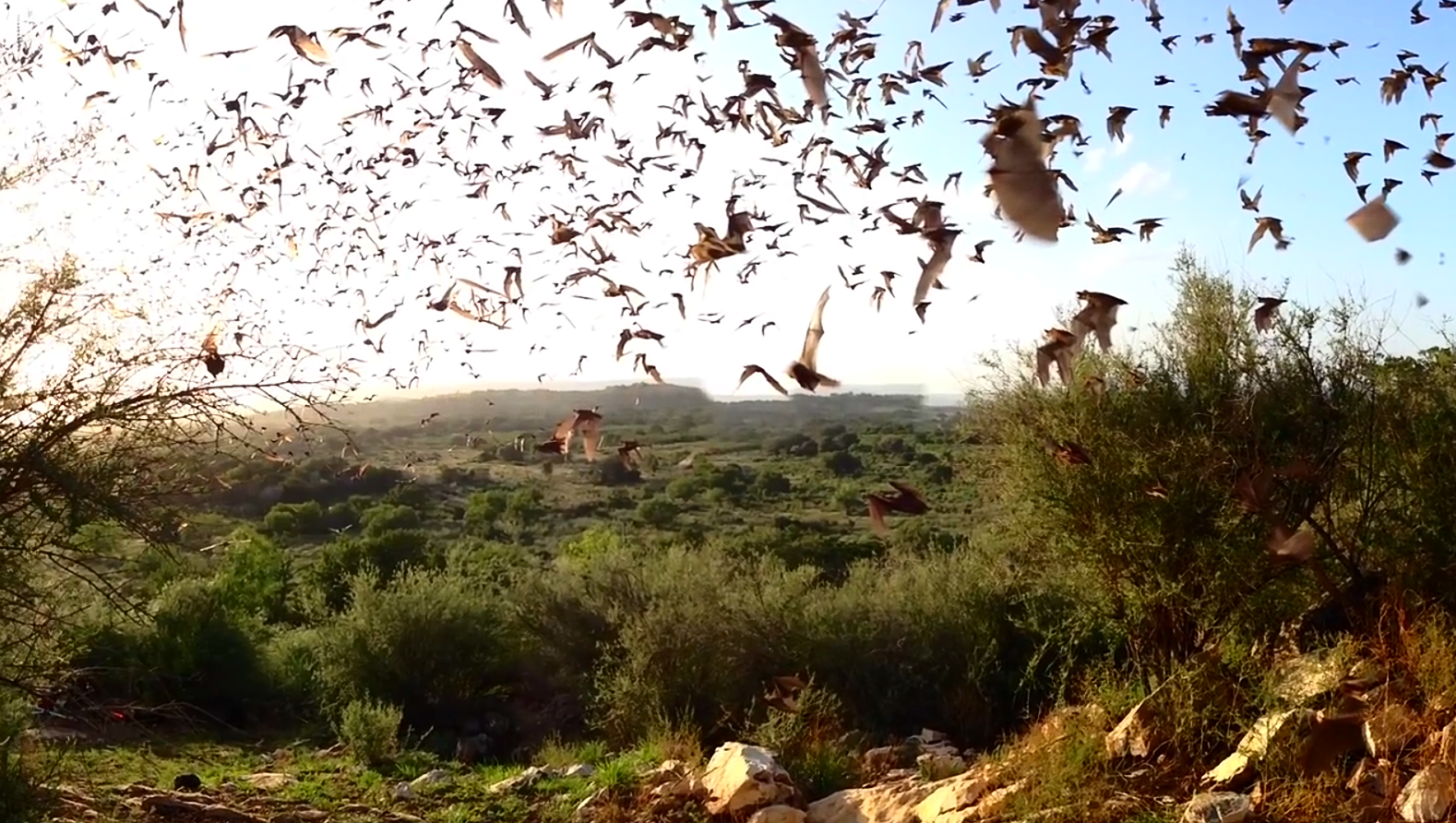 举个例子:该团队将Chirocopter部署在美国新墨西哥州的一处洞穴外面——约80万只巴西无尾蝙蝠生活在那里。黎明前夕,蝙蝠会形成密集的聚合体,并且以每小时超过100公里的速度沿着一个嘈杂的空中“高速公路”返回洞穴。该团队操控Chirocopter,使其在这个快速移动的蝙蝠群内以5~50米的高度盘旋了84分钟。那里的蝙蝠是如此之多,以至于科学家每分钟记录到46次回声定位的蝙蝠叫声。