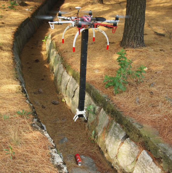 但是执行器的特殊之处在于它们可以折叠平整。科学家们把这种机械臂悬挂在无人机上。当配备抓手后,其以抓住沟渠底部的物体。配备摄像头时,可能会在树枝间拍摄视频。