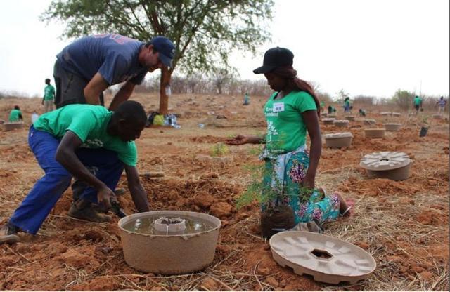 对于干旱缺水的地方来说,进行修复工作最大的困难在于成活率低。一些干旱地区树苗的存活率不足20%。荷兰一家创新公司Land Life脑洞大开,用再生纸造了一个盛水的器皿(cocoon),并且在外部涂了一层特制的蜡来增强防水性能。把树苗种在中间,通过棉线导出cocoon里的水来浇灌树苗。