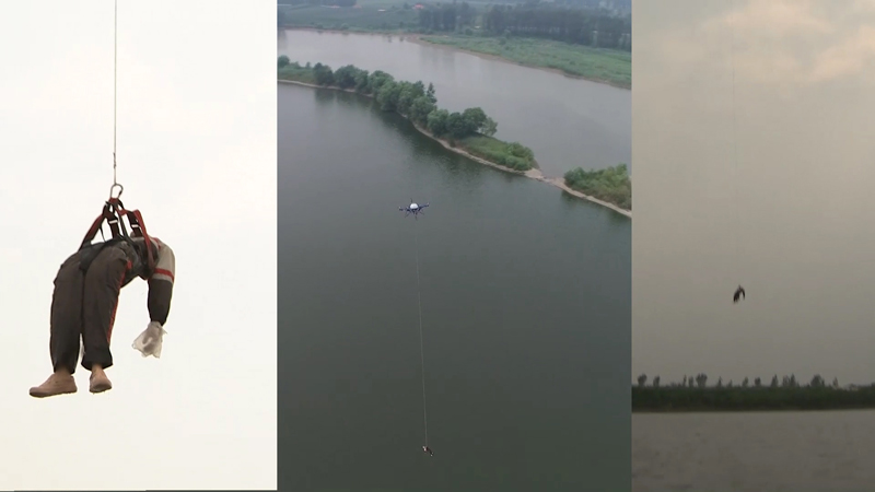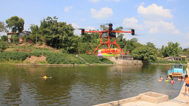 上面两款是国飞航空的救援无人机,图一是能够投放救生圈以及载起被困人员到安全地点,图二是投放救生圈并拖动被困人员到岸边。这两款无人机的用处各有优点,分别应对不同情况下的突发灾害,更详细的确保人员生命安全。