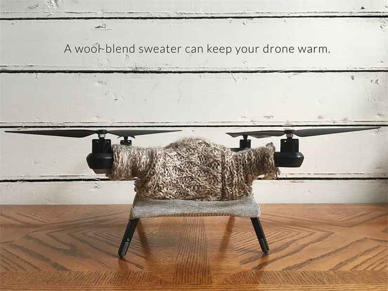在寒冷的冬天,人们会习惯性的穿上厚厚的毛衣进行御寒,这是因为人体在寒冷的环境下身体发出的信号。而人类制造的无人机,也会有“害怕”寒冷的时候,这个时候你会不会想到给你的无人机穿上毛衣呢?可能很多人对于这样的想法觉得太过奇葩,但是小编却了解到在美国旧金山就有这么一家公司——dronesweaters,专门为无人机制作毛衣。
