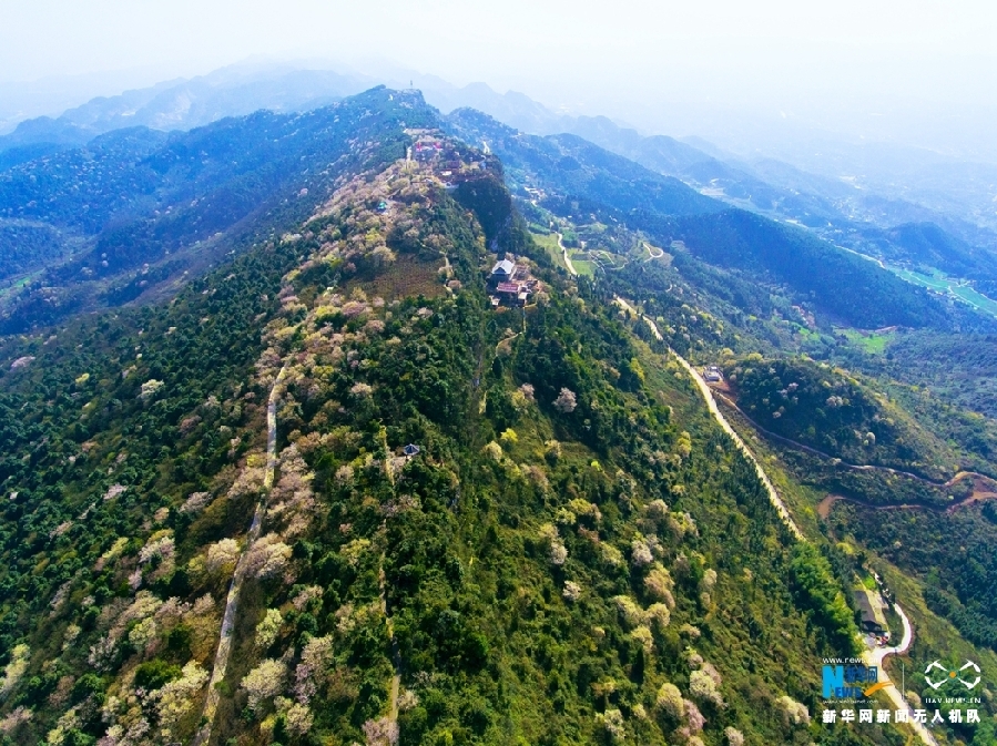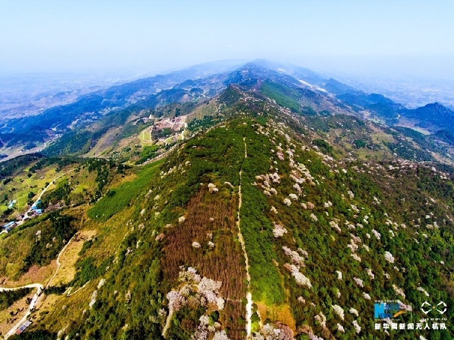 阳春三月花开时。近日,重庆市渝北区大盛镇云龟山万亩野樱花正渐次绽放。野樱花遍布在云龟山的山间和山顶,与苍翠森林互相点缀,盛景迷人。新华网发(傅杰 摄)