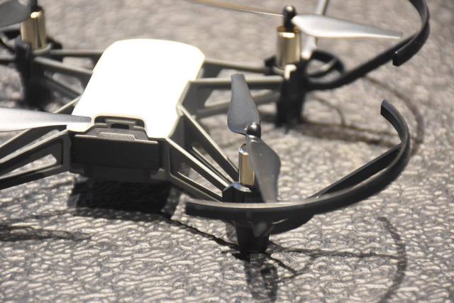 机身采用镂空设计,并在机臂外侧安装了可拆卸的桨叶保护架。桨叶是软性材质的,这在使用过程中将可能会造成的伤害降到最低。并且别看是这样轻薄的设计,但真的很抗摔。什么撞到墙还是冲上天花板跌落时安然无恙,重启后就能重新起飞,愉快的玩耍。