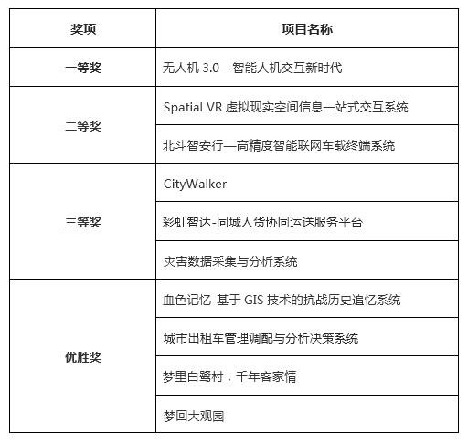 2018年3月17日,由中国测绘地理信息学会指导,Esri中国、厦门极美众创空间、泰伯网、知卓资本联合主办的第二届中国地理信息技术创新创业大赛总决赛在北京圆满落幕,武汉大学“无人机3.0-智能人机交互新时代”项目和苏州寻息“室内位置服务设备与软件服务平台”项目分别摘得学生组和企业组的桂冠,给为期半年经历北京、武汉、厦门三个分站预赛的北京站总决赛画上完满句号。