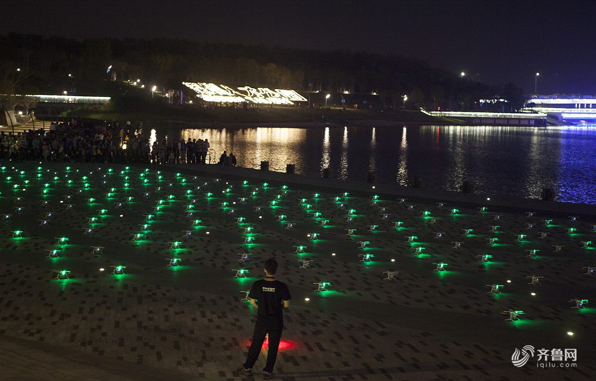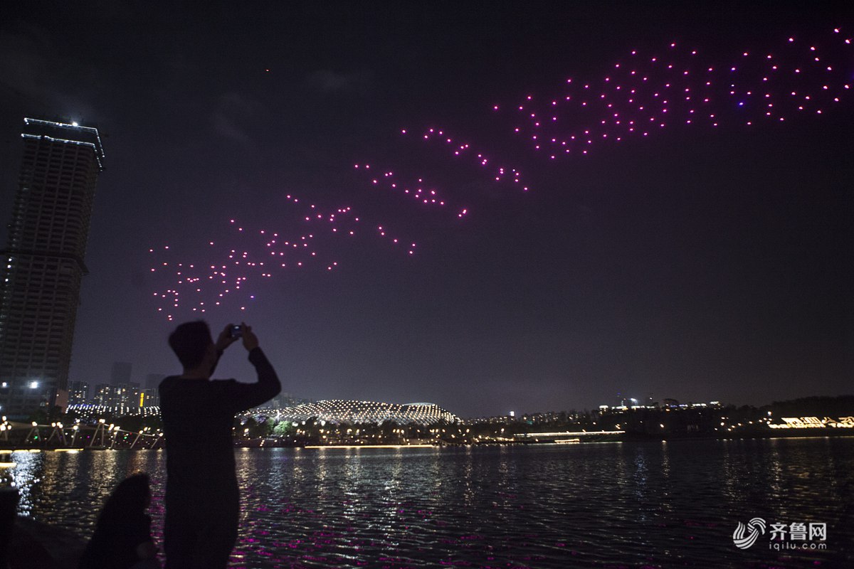 表演,吸引不少市民围观,大约250架无人机在空中摆出各种造型历时10分钟。渺小的无人机在深圳夜空组成各种图案,成当日夜空中“最亮的星”。