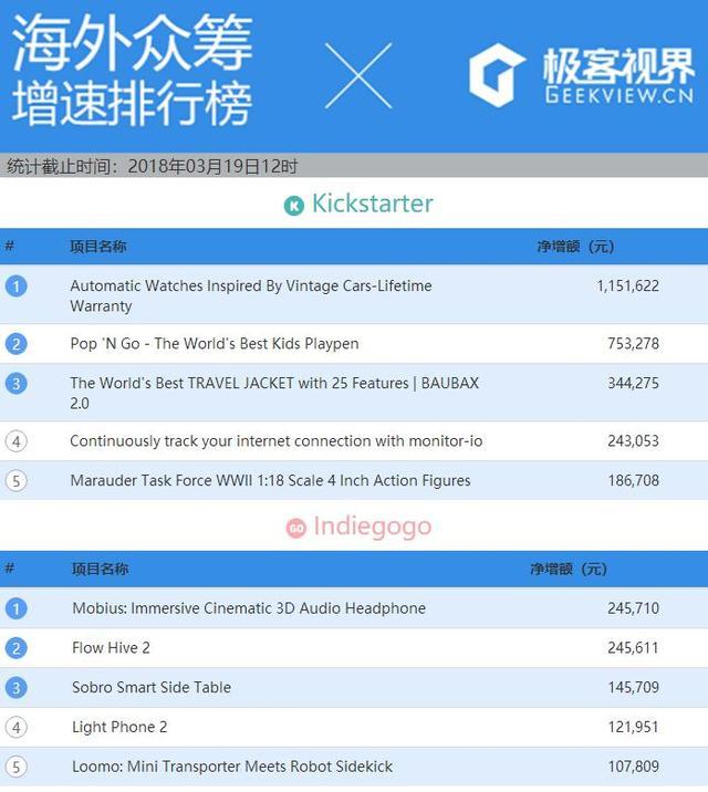 今天 Kickstarter第一名的 Automatic watches 今天共筹得 1,151,622 RMB。