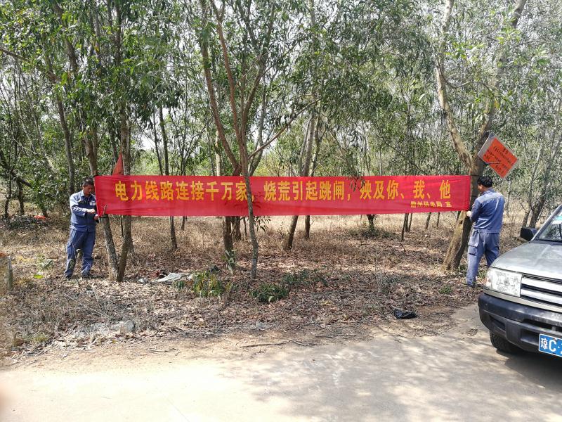 截止目前,儋州供电局输电管理所共发现山火隐患点97处,已处理78处;组织员工到各个乡、镇、农场等人口密集区发放防山火宣传单3千张;在线廊经过的路口、村口、公墓等地悬挂防山火和文明祭祖的宣传横幅200张;特别是在在易发生山火处安装了防山火监控44台,在电脑、手机上可以实时监控易发生山火现场的情况,一旦山火发生,可实时对山火走向、火势情况进行跟踪,研究相应应对措施,以最大程度避免山火对电网的冲击。