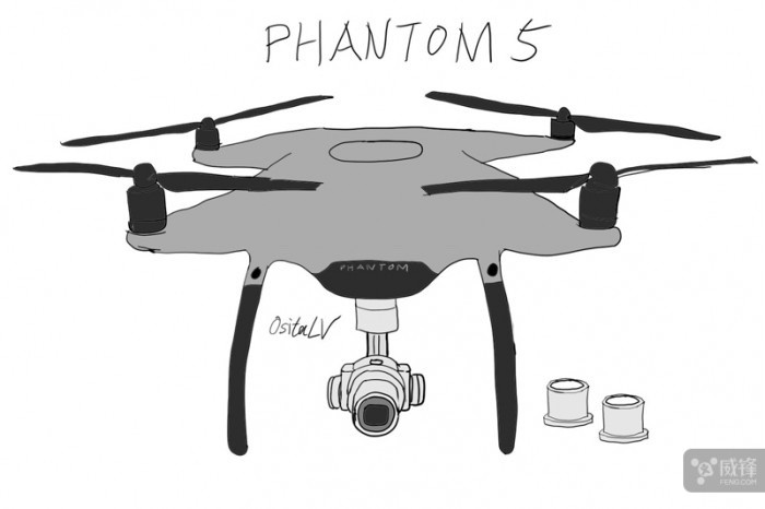 在这组谍照下方,还有一张简略的设计草图,外观和之前的精灵系列并没有太大区别,只有机身颜色和可换镜头两个特征。不过大疆也已经对这组谍照做出了回应,他们表示这台精灵5实际为定制版本,不是市售版。不过小编觉得谍照有一定的可信度,毕竟如果是定制产品的话,这阵仗也太大了点,专门开发一个相机卡口可不简单。