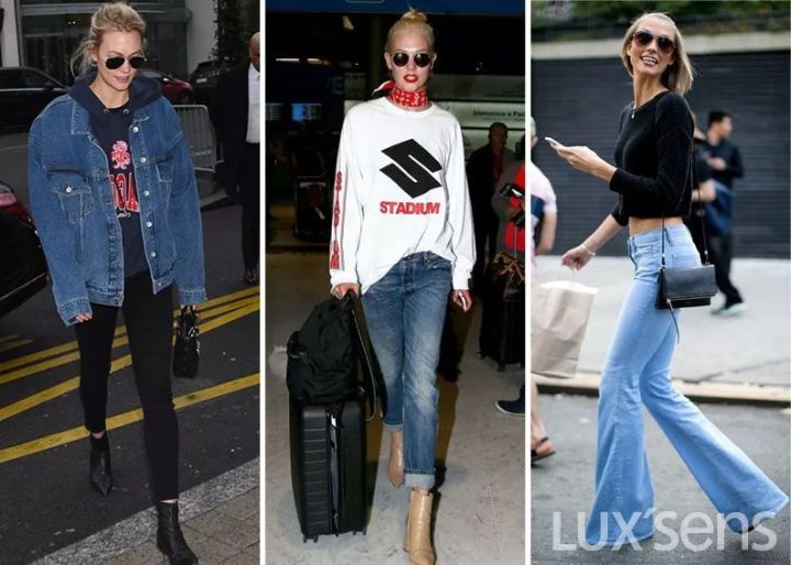 牛仔面料也是她经常选择的单品,连帽卫衣内搭、方巾系脖、低腰复古喇叭裤,简直是各种高阶穿搭范本!