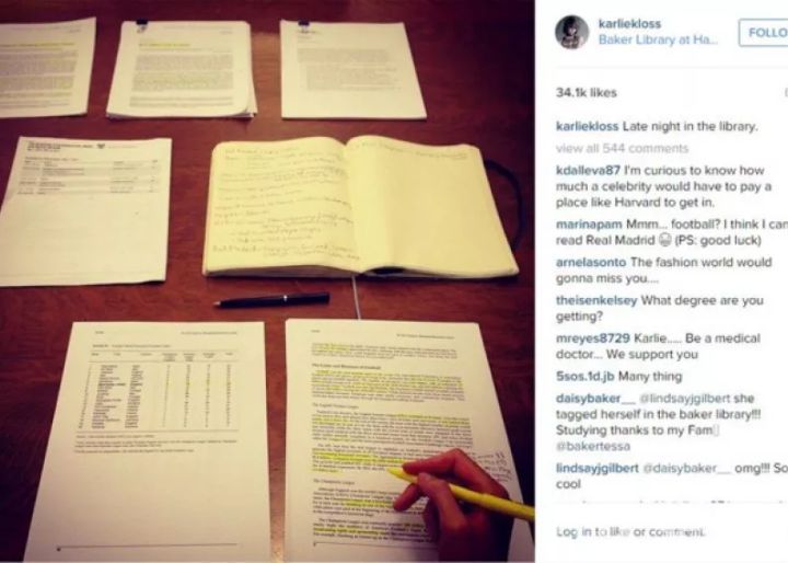 但是在2014年她突然宣布暂时告别时尚圈,重返大学进修学习编程专业。期间她的 INS 都是这种学霸画风。