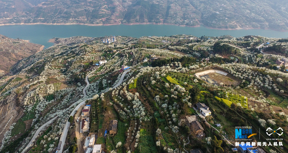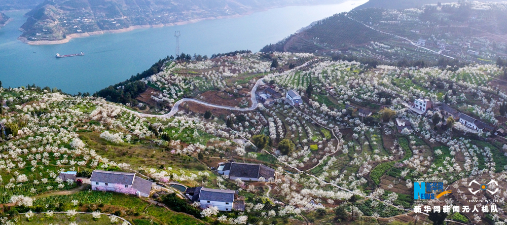 进入三月下旬,天气渐暖,长江三峡巫峡也迎来浓浓春色。图为无人机航拍长江三峡巫峡腹地巫山县曲尺乡柑园村,脆李树遍布田野,盛开的李花扮靓长江。新华网发(冉宾雁 摄)