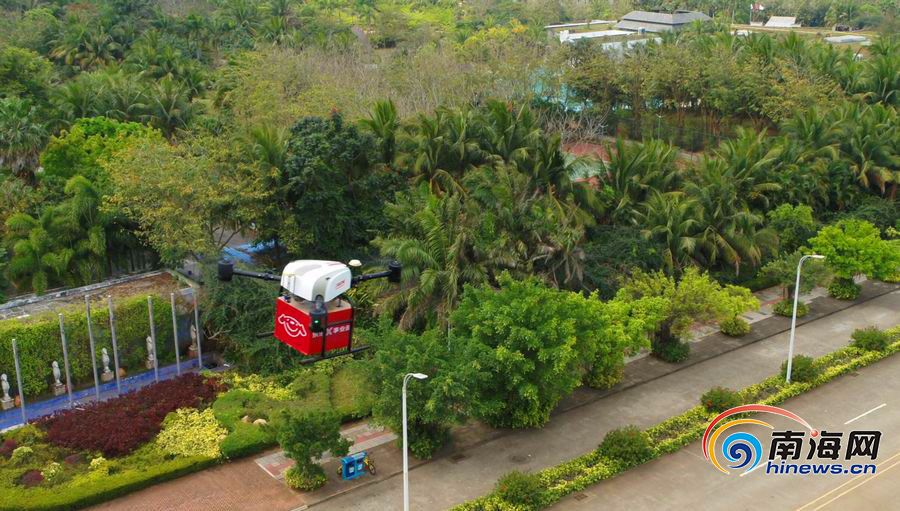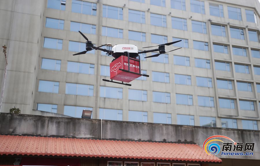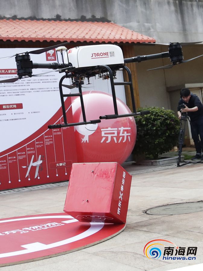 南海网、南海网客户端海口3月26日消息(南海网记者 刘洋)3月26日上午,随着京东无人机载着货物从海口市长流镇配送点出发,京东在海南试运营的第一个无人机配送站正式启用。10时12分左右,无人机到达指定的投送地点,缓慢的将货物放下,快递小哥把物品送到客户的手上,海南首次无人机快递配送顺利完成。