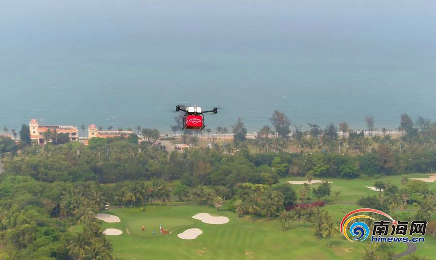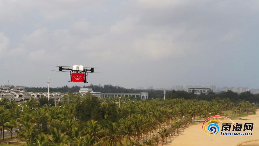 无人机到达目的地上空,准备降落。南海网记者刘洋摄