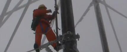 由于山路陡峭,从山脚到山腰老白和队员们走了将近一个小时,“这样的温度还是很舒服的,不像夏天,温度高特别容易中暑。”到达目的地后,老白和队员们便开始作业。有的拿起望远镜仔细观察塔身的线路,有的弯下腰摸一摸塔脚的接地装置,队员们仔细地检查电线是否遭受雷击损坏,做着详细记录。