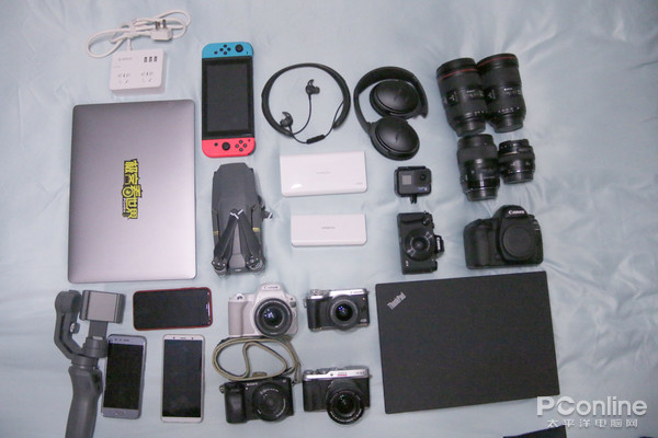 当然除了横屏所携带的设备外,负责此次极客看世界拍摄任务的专业设备,还有很多!极客们还带了树熊的佳能5D mark4、武藏的佳能200D、以及Potatoman的佳能70D,镜头方面,佳能EF 16-35mm F2.8 II、EF 24-105mm F4.0 II、EF 50mm F1.4和Sigma 35mm F1.4、EF-S 18-200mm F3.5-5.6、EF-S 18-55mm F4-5.6的6个镜头,多焦段捕捉美景。